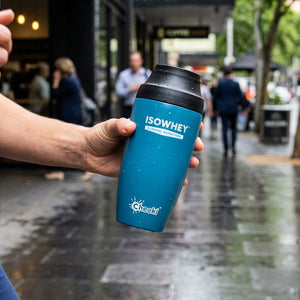 This Exclusive IsoWhey mug holds 350mL and is built for on-the-go. Featuring  triple wall vacuum insulation and Copper Lock Technology this coffee mug will keep your coffee hot for 8 hours or your iced drinks cold for up to 12 hours.