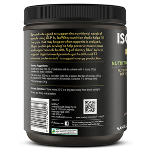 Rich in protein, fibre, and essential vitamins and minerals; IsoWhey GLP-1 Nutrition shakes help support your GLP-1 plan by providing protein for muscle support, fibre for digestion and B-vitamins for energy.