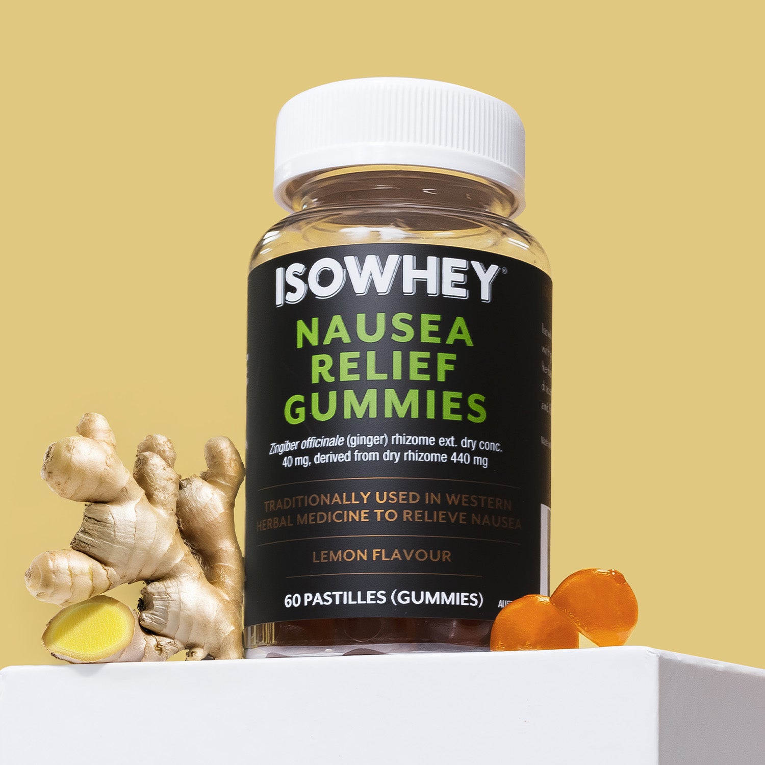 Isowhey Nausea Relief Gummies are formulated with ginger extract, traditionally used in Western herbal medicine to relieve nausea, digestive discomfort, symptoms of indigestion, and flatulence.