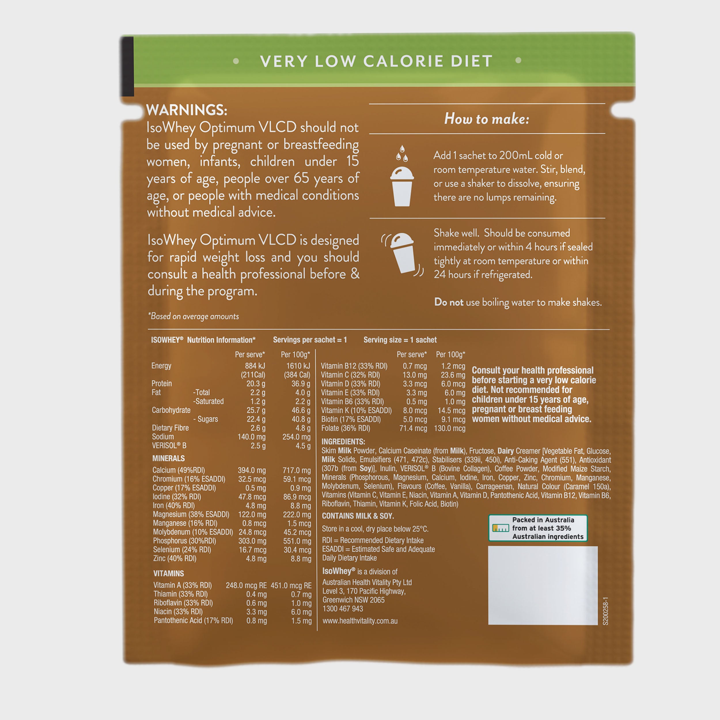 Nutritional Information for IsoWhey Optimum VLCD Shake