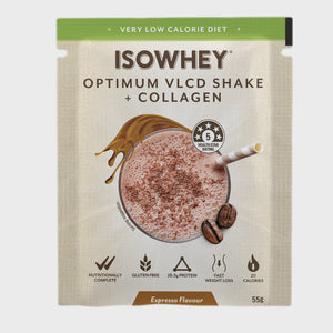 IsoWhey Optimum VLCD + Collagen (very low calorie diet) is a total meal replacement that is nutritionally balanced with 24 vitamins and minerals. That means you can have up to 3 shakes per day for rapid weight loss or for a more gradual approach just replace one or 2 meals.