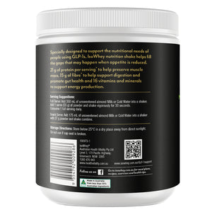 IsoWhey GLP-1 Support Plant-Based Nutrition Shake is made with a blend of pea, brown rice and hemp protein that means you get a deliciously smooth shake with no grassy taste or smell. With 21g of protein per serve* to help preserve muscle mass, 16g of fibre to help support digestion and promote gut health and 16 vitamins and minerals to support your energy production!