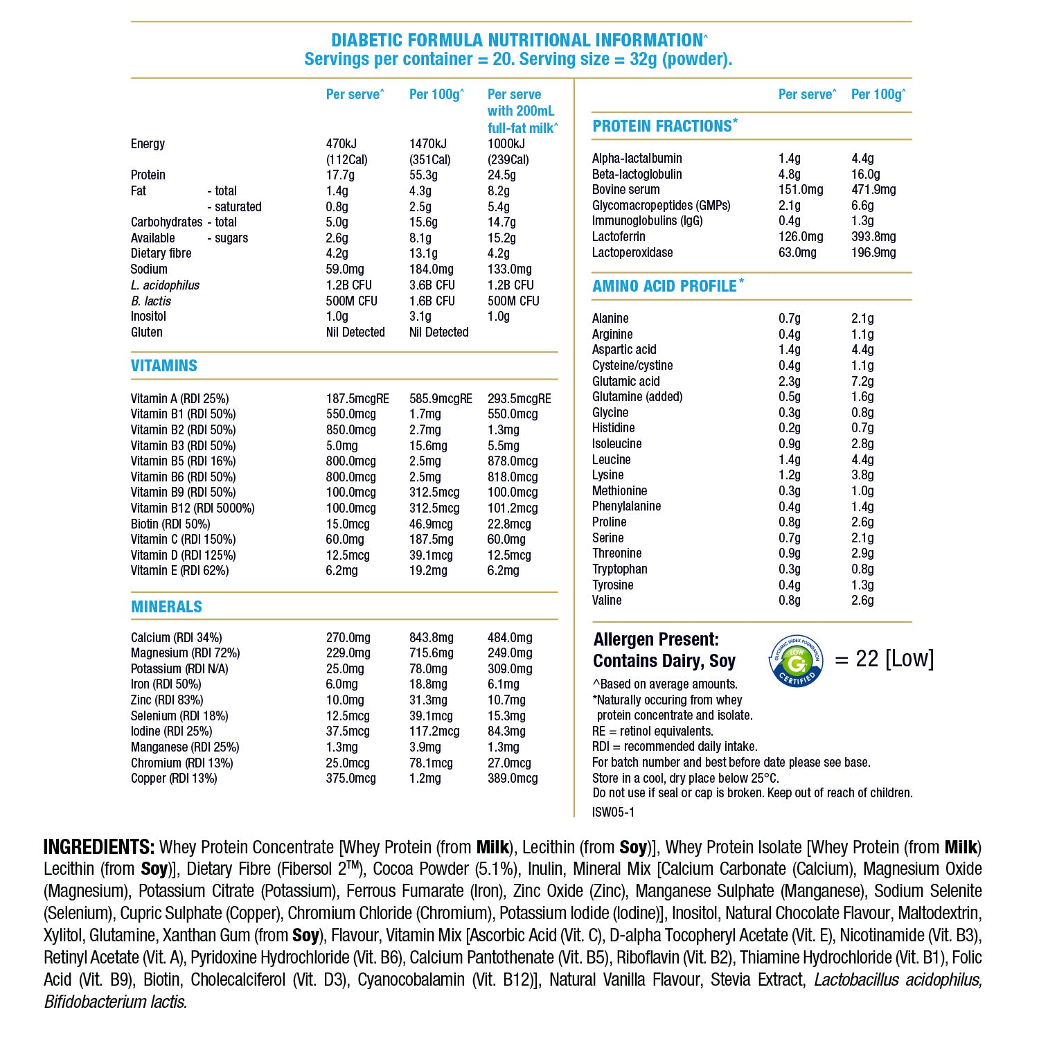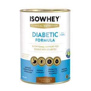IsoWhey Clinical Nutrition Diabetic Formula is designed to support sugar metabolism by providing a high protein nutritional meal replacement.