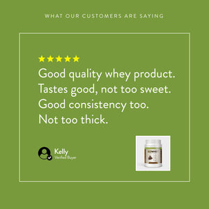 - 15g of pure whey protein, sourced from grass-fed cows - premium quality and specific ratio of whey protein concentrate and whey protein isolate.