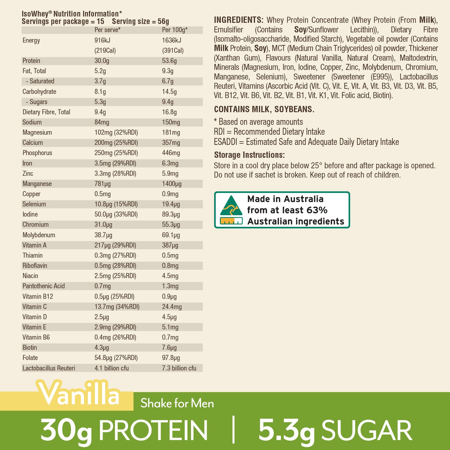 Weight loss doesn't have to be hard, it doesn't need to mean hours spent in the gym, bland tasteless meals and the death of your social life. We have packed every IsoWhey Men's Shake with 30g of pure Australian Whey Protein, fibre, and essential vitamins and minerals to give you a complete meal that's easy to make and satisfying to take.
