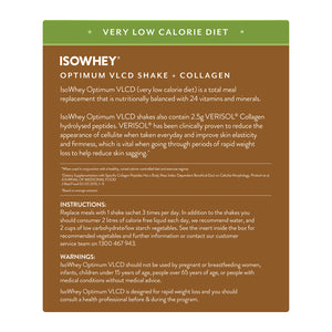 IsoWhey Optimum VLCD + Collagen (very low calorie diet) is a total meal replacement that is nutritionally balanced with 24 vitamins and minerals. That means you can have up to 3 shakes per day for rapid weight loss or for a more gradual approach just replace one or 2 meals.