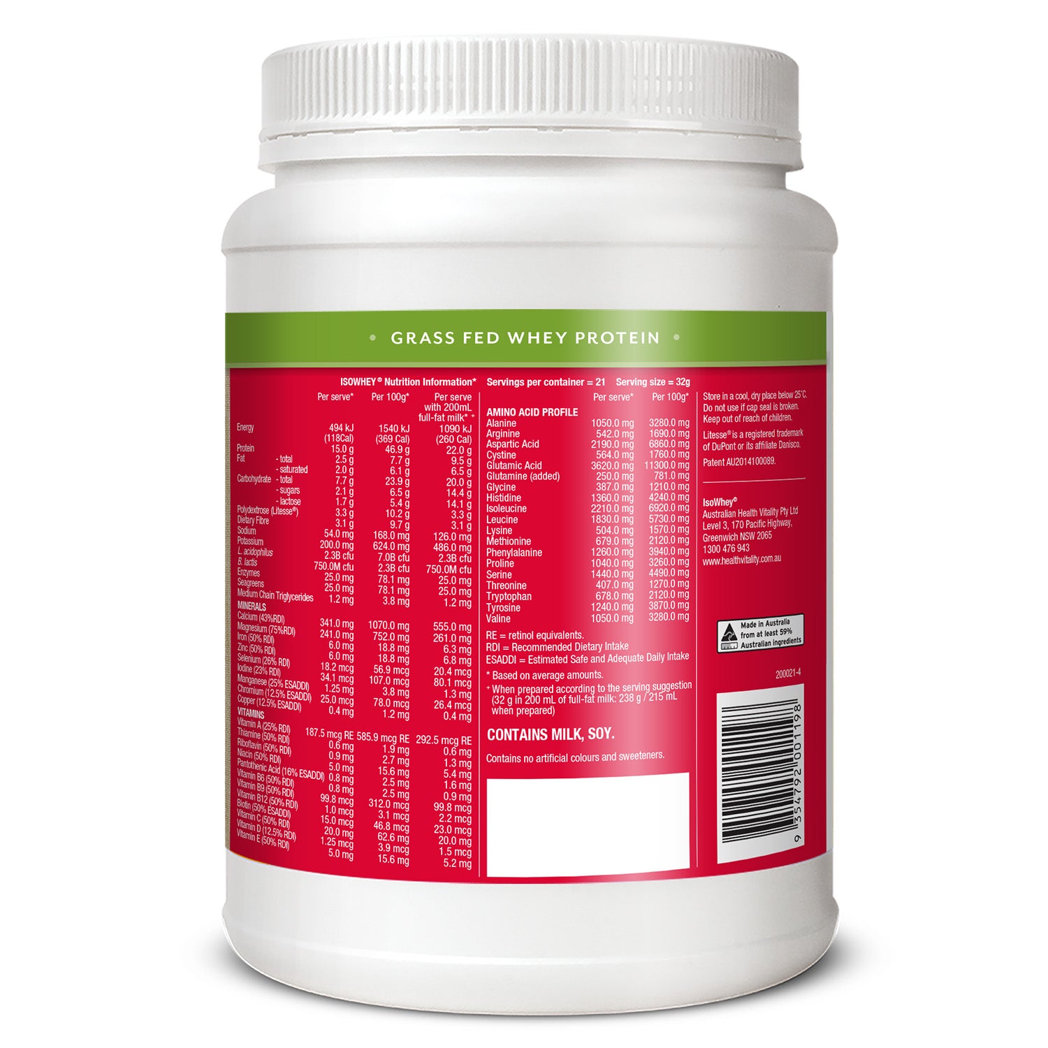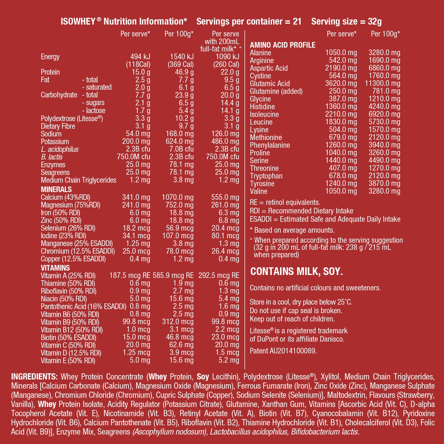 - Gluten-free and less than 1g of lactose per serve.